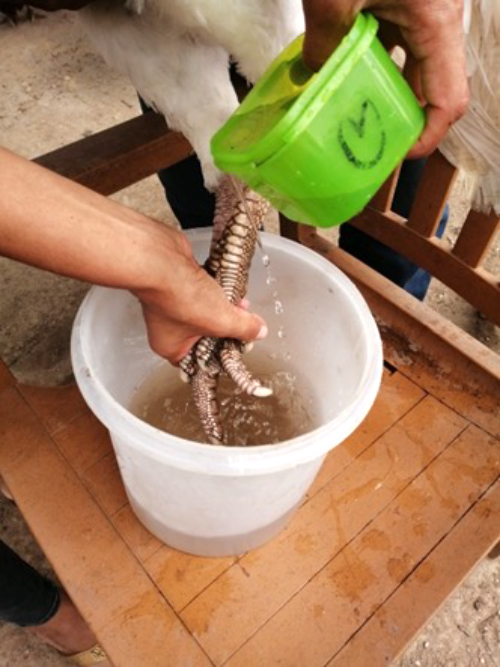 Para lo cual se emplearon 100 pavos de doble pechuga con 21 días de nacidos. Los mismos que fueron distribuidos aleatoriamente en 33 unidades experimentales por tratamientos con 3 repeticiones de 11 cada una tomando 5 aves por cada repetición para su muestreo. El suministro de ajo fue por el método de Trituración del ajo (Allium sativum L.) (modificado)