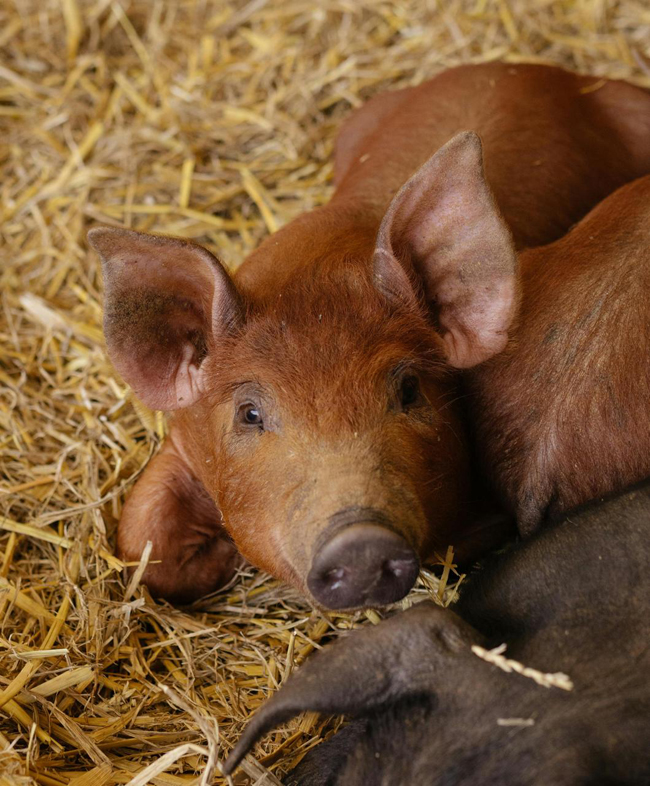Nuestros Durocs son especialmente seleccionados por los productores, en base a su porcentaje de carne magra, y su actual aumento de peso diario: medido con precisión por las estaciones de alimentación de Danish Pig Genetics.